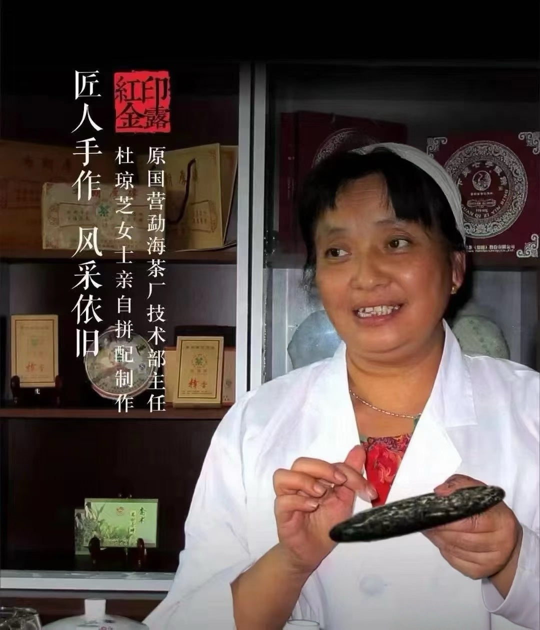 The legend of Pu'er ripe tea began with trial production in 1973. After two years of technological refinement, the production process was officially finalized in 1975. The naming of "Imperial Pu'er" as a premium category of ripe Pu'er can be traced back to the late 1990s, when Menghai Tea Factory reused this royal appellation to promote its top-grade raw materials, thus making the name of Imperial Pu'er ripe tea renowned across the tea industry. The vintage treasure brought to you by Tongxinshe Teahouse on this occasion is a custom-made Imperial Pu'er ripe tea from the 1990s, personally crafted by Ms. Du Qiongzhi, the former director of the Fermentation Department at Menghai Tea Factory.