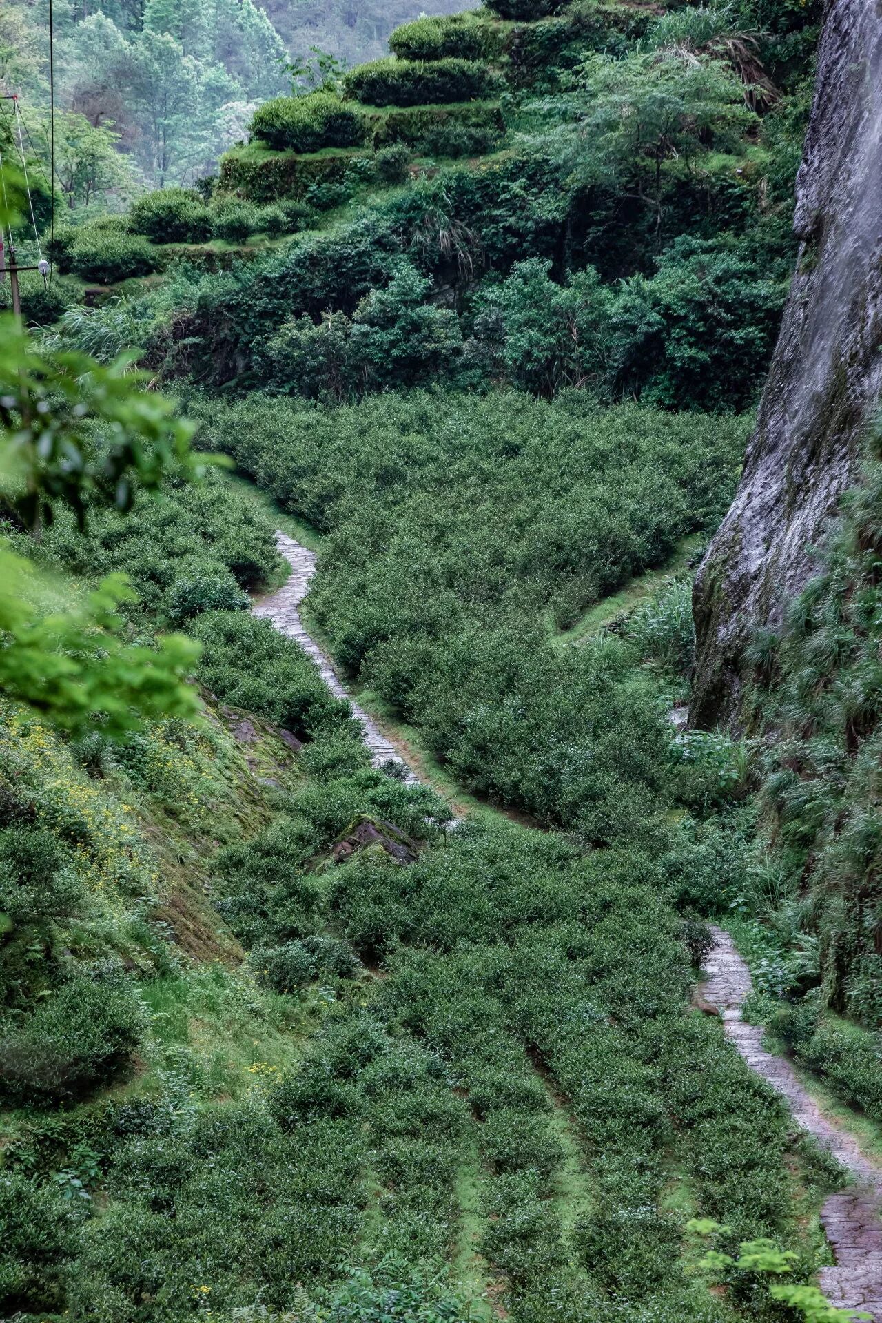 A premium rock tea starts with an exceptional terroir. Wuyi Mountain features a typical Danxia landform, with towering cliffs, deep valleys, and loose, fertile "weathered rock" soil—an ideal habitat perfectly aligned with what Lu Yu praised in The Classic of Tea: "The finest tea grows on weathered rock, the medium on gravelly soil, and the inferior on loess." Rooted in this terrain, tea trees absorb minerals accumulated over hundreds of millions of years, ultimately developing the unique "rock bone and floral fragrance" that defines Wuyi Rock Tea.