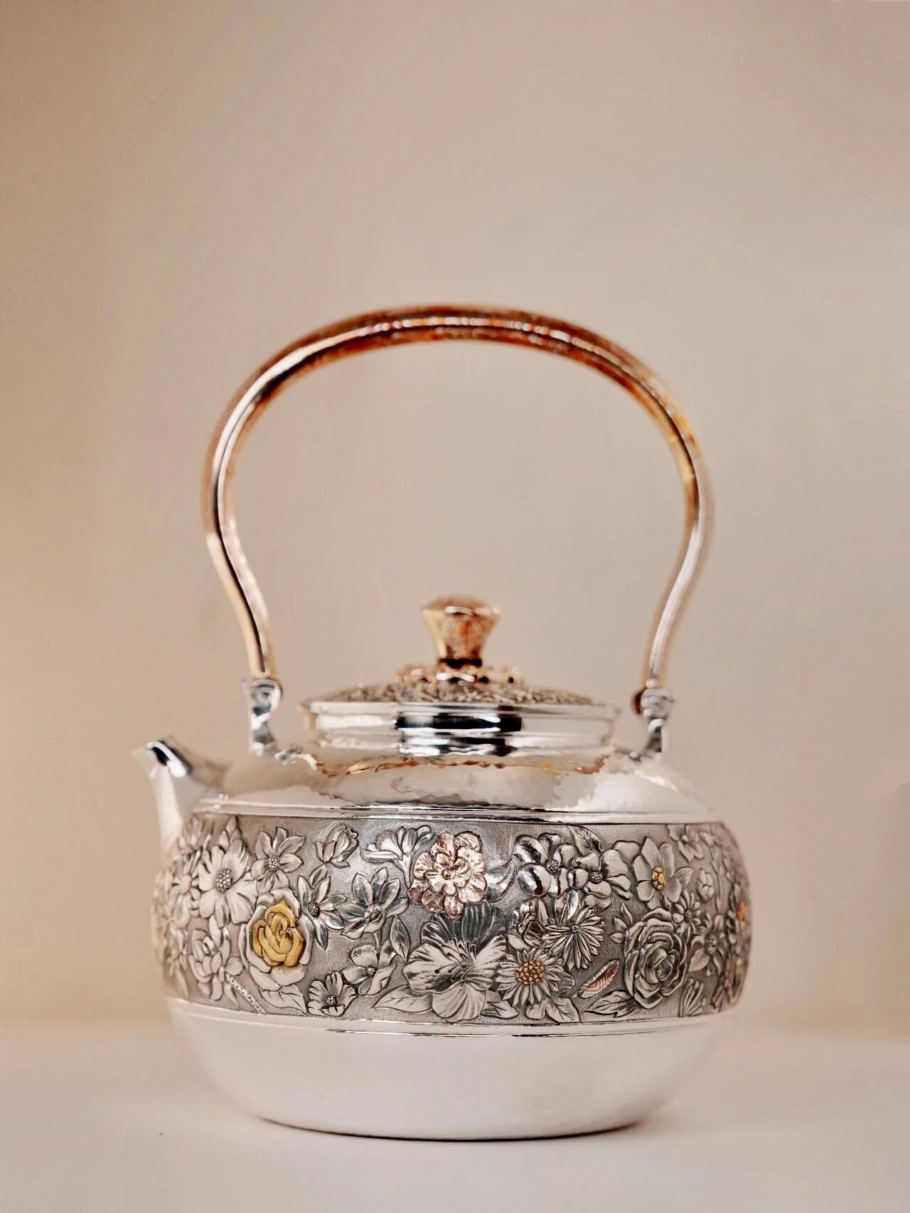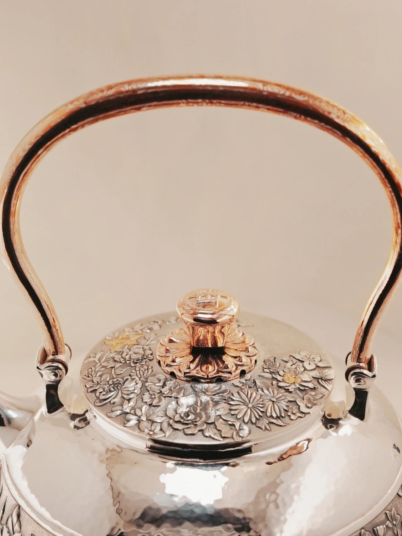 The world highly praises silver pots, first and foremost for their quality. Silver itself is clean, tasteless, and not easy to rust. When made into a pot, it can produce "silk-like water" when boiling, which is delicate and smooth. When used to make tea, it can make the tea soup taste gentle and long-lasting, with a sweet aftertaste like spring water. It not only extracts the essence of tea leaves, enhances the aroma and awakens the taste, but also fully releases the mellow flavor of Pu'er and the charm of Oolong, achieving the ultimate expression of tea's color, aroma, taste, shape and rhythm, adding a unique charm to the tea ceremony.