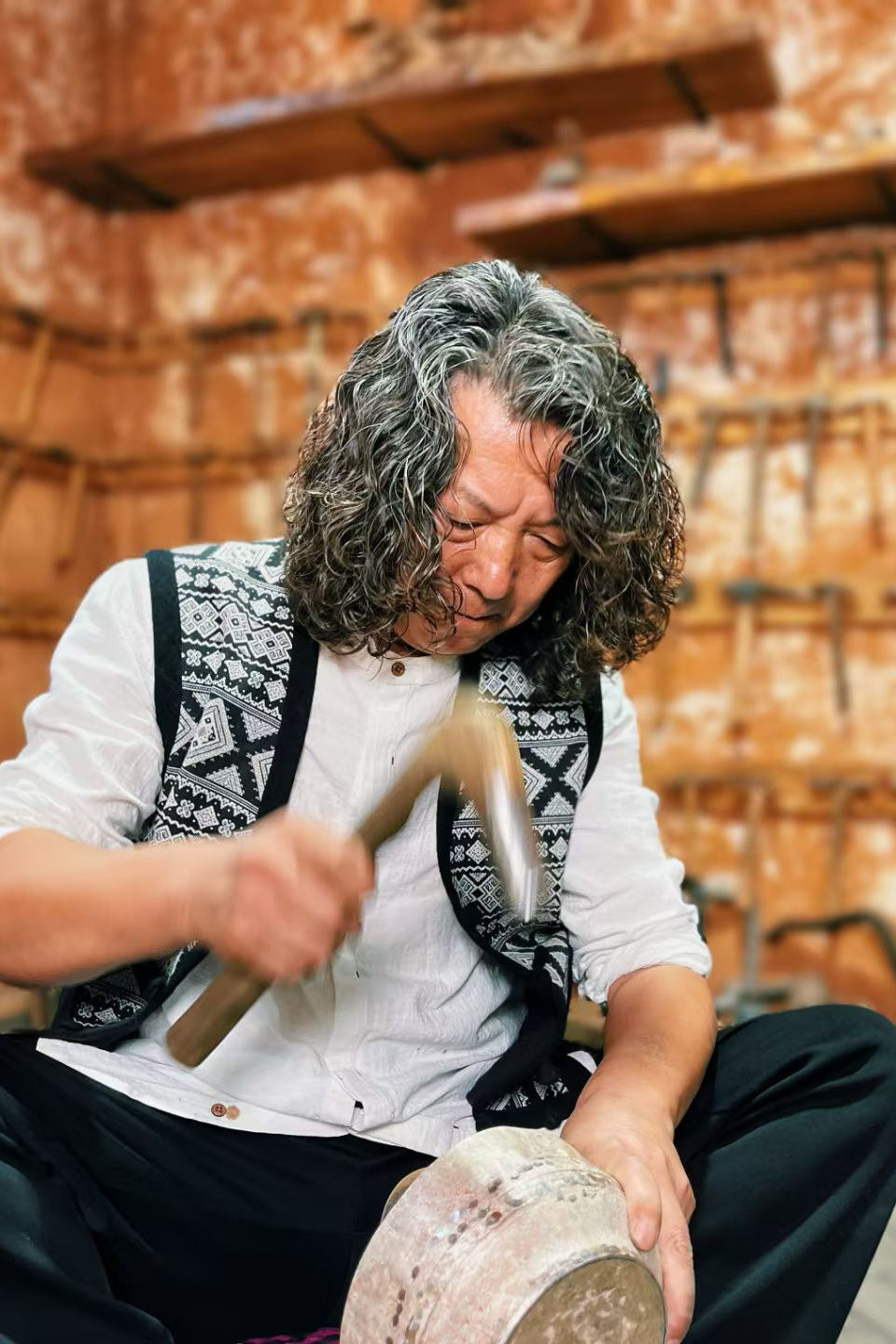 When it comes to silver pot craftsmanship, one cannot bypass Heqing in Yunnan, a place where "small hammers have been striking for a thousand years". Since the Nanzhao period of the Tang Dynasty, it has been a handicraft center for gold, silver and copper utensils. In 2014, the Heqing Silver Ornament Forging Technique was listed as a national intangible cultural heritage, and the ancient craftsmanship has been passed down from generation to generation in the sound of craftsmen's hammers. The Bai craftsman Mu Binglin, born in Xinhua Village of Heqing, carries this thousand-year-old ingenuity. Xinhua Village has been famous for silverware processing since the Ming Dynasty, and generations have been engaged in metal craftsmanship. Mu Binglin has been associated with gold and silver since childhood. At the age of 14, he took up the burden to be a "small furnace craftsman" and traveled from village to village, which was also called "traveling to Yifang". After years of tempering, he became the inheritor of the fifth batch of national intangible cultural heritage techniques in 2018. He has always believed that "the soul of artistic design lies in culture". All the utensils he makes take culture as the backbone and craftsmanship as the soul, with both temperature and vitality.