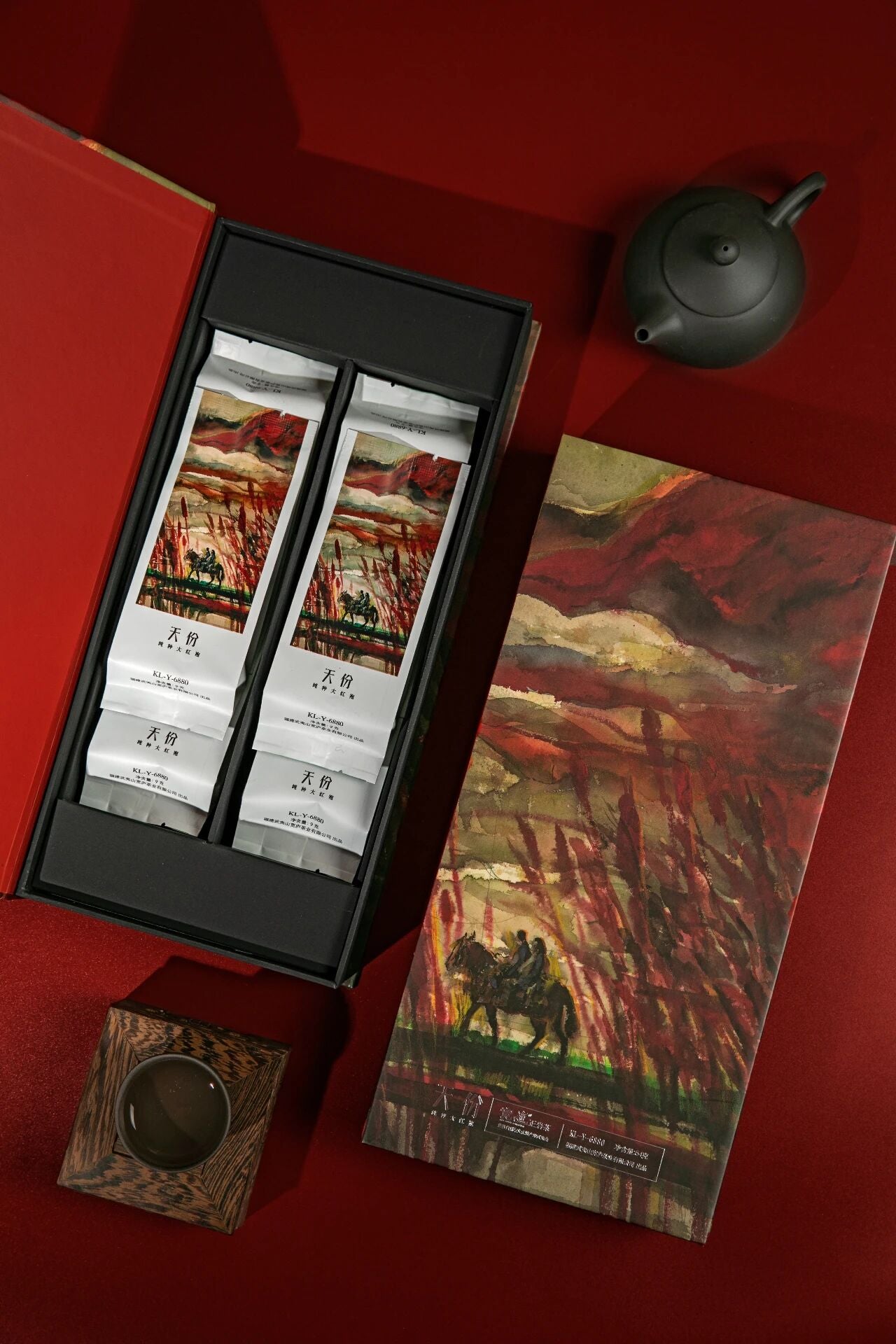 He Sui Tianfen Qidan is a heavenly gift from nature and a masterpiece of inherited craftsmanship. The packaging features the artwork Youth Like Fire by Mr. Wang Weixin from the Central Academy of Fine Arts. The talent and spirit of the artist meet the nurturing of Wuyi’s mountains and the meticulous traditional tea-making craft. Tasting this tea is not only about flavor but also appreciating art and life.