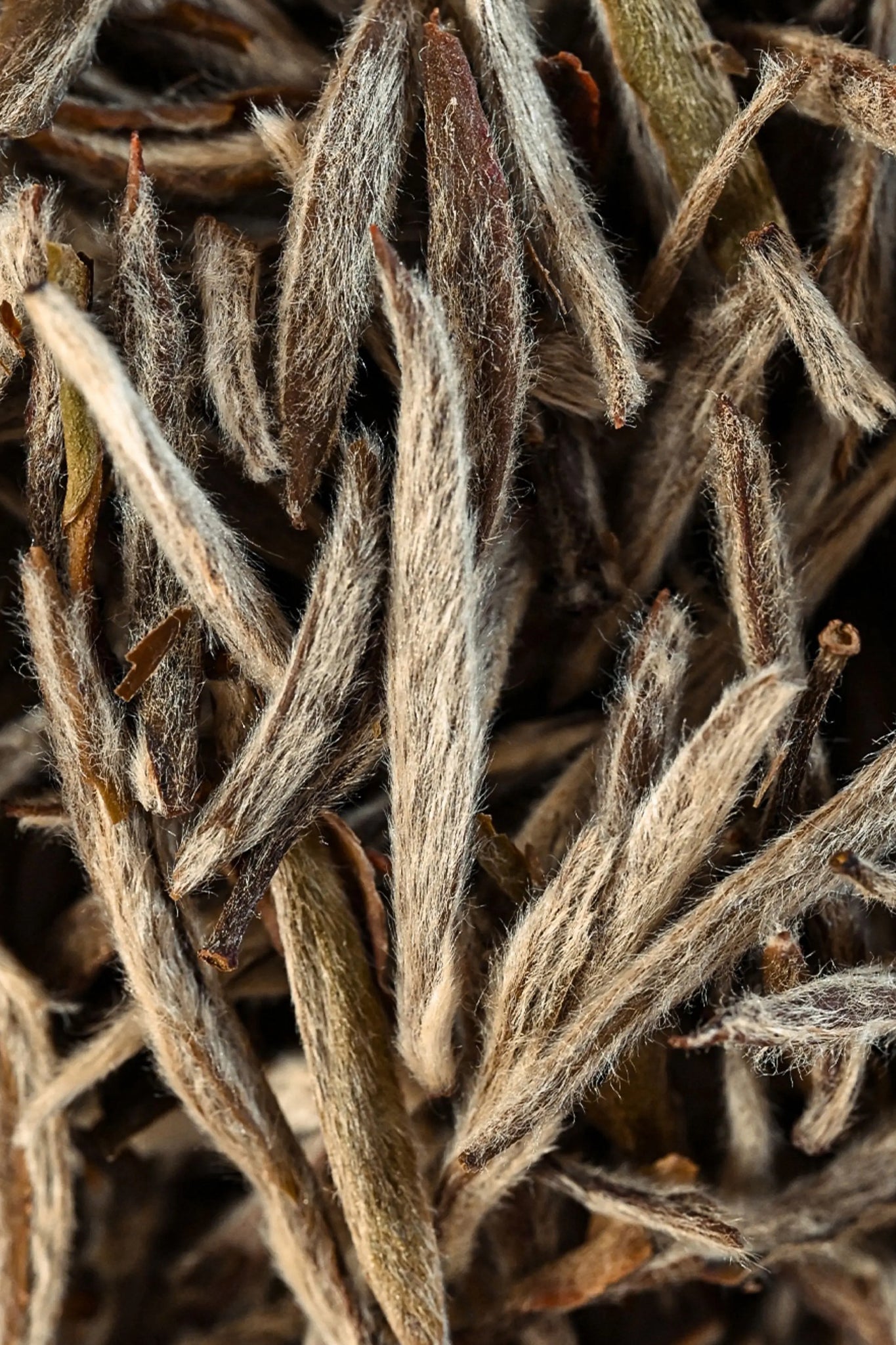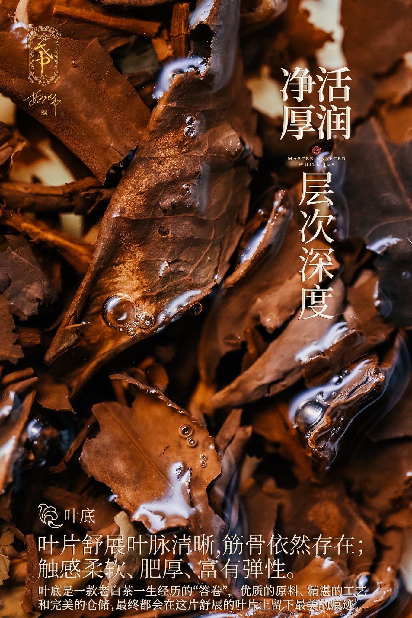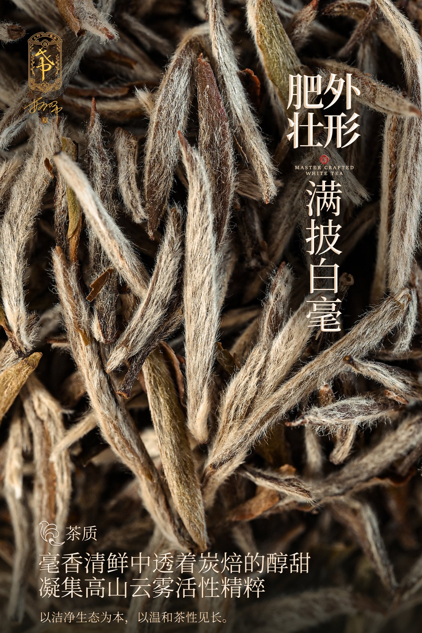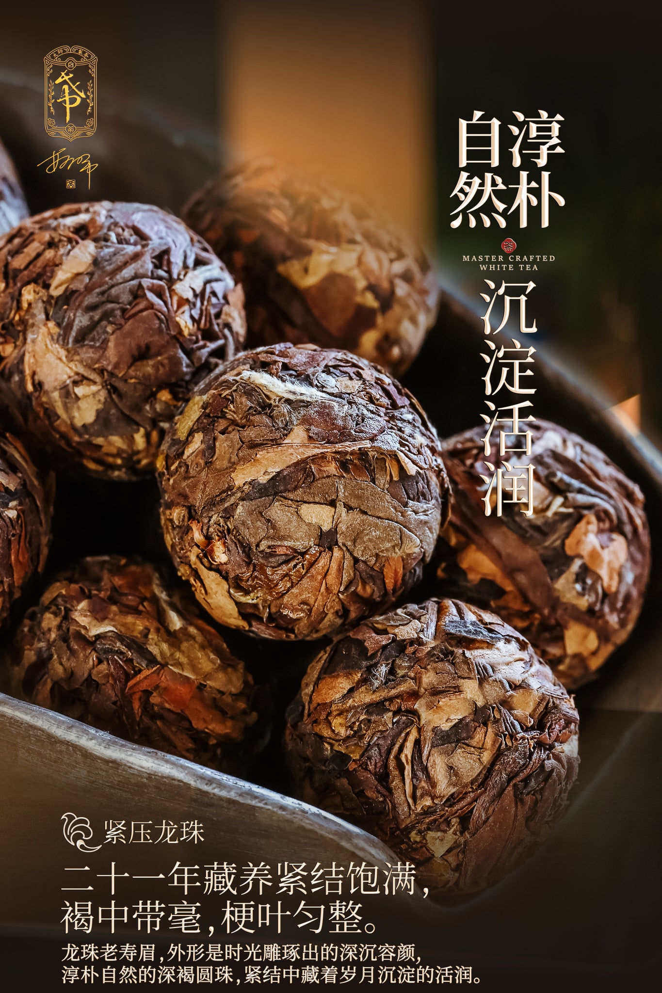 Master Lin Youxi, a representative inheritor of Fuding white tea production techniques and an Outstanding Chinese Tea Professional, has dedicated decades to the tea industry, adhering to the ancient craft of "no stir-frying, no rolling, natural formation." For this collection, he selects raw materials from the core area of Tianhu Ecological Tea Manor in Tai Mu Mountain, Fuding—where mountains and seas meet, and clouds and mist linger, endowing the tea leaves with abundant fresh amino acids and aromatic substances. The 2015 Baihao Yinzhen, aged for ten years, has shed the astringency of new tea, featuring plump and full buds like silver and snow, covered with fine white down, showcasing natural beauty. Its delicate downy fragrance mingles with the mellow sweetness of charcoal roasting; when sipped, it is smooth and glutinous, with layers of honey, floral, and woody aromas unfolding in the mouth—calm yet vibrant, leaving a long-lasting sweet aftertaste with apricot-yellow, lustrous tea soup coating the lips and teeth. The 2004 Laoshoumei is an even rarer treasure aged for 21 years, pressed into dark brown pearls with fine down, uniform stems and leaves, and rich overlapping aromas of aged tea and jujube. The golden tea soup is delicate and smooth; woody freshness and fruit-floral honey sweetness awaken on the tongue, with persistent sweet aftertaste and excellent steeping resistance—suitable for both brewing and boiling. Each sip embodies the mellow warmth accumulated over time.