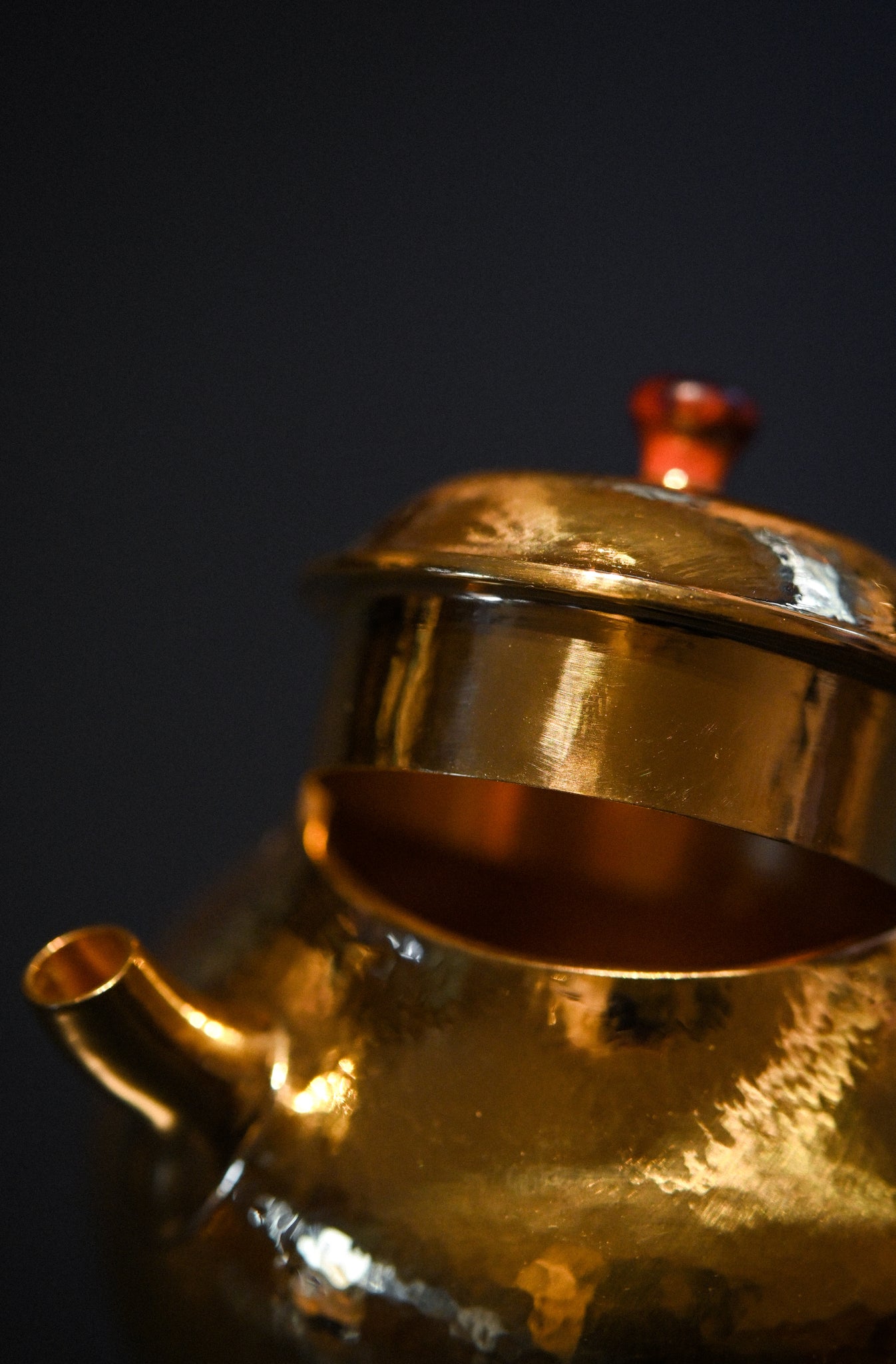 As a natural inert metal, pure gold is an ideal material for teapots. It does not absorb tea aroma or alter the acidity and alkalinity of the tea liquor, preserving the purest original fragrance and taste of the tea leaves. The 100cc golden ratio capacity ensures full integration of tea leaves and water temperature, quickly unlocking layered aromas. Additionally, gold’s gentle and uniform thermal conductivity prevents the tea from turning bitter due to local overheating, resulting in a smooth, mellow brew with a long-lasting sweet aftertaste and lingering throat charm. For seasoned tea lovers, brewing tea with a pure gold teapot is not only the ultimate sensory pleasure but also the highest pursuit of the tea ceremony’s spirit of "seeking truth and purity."
