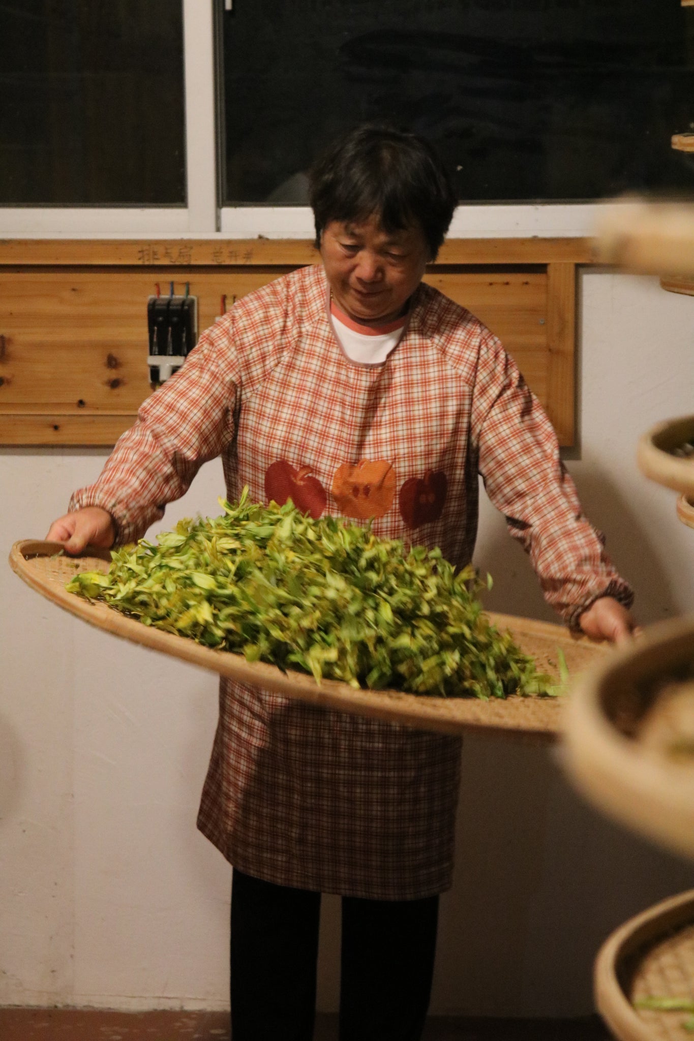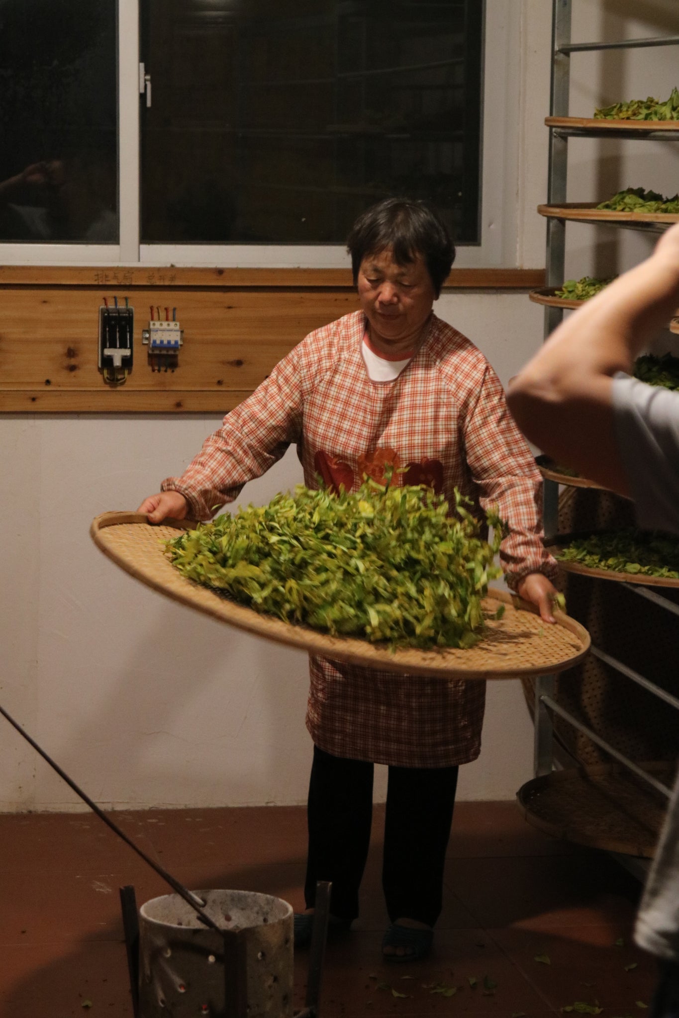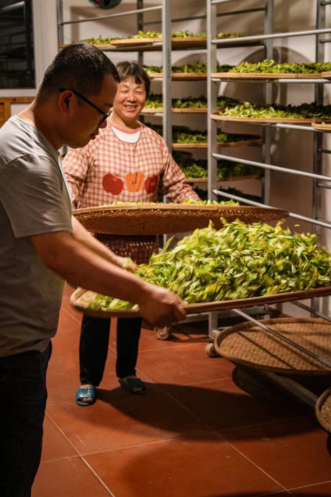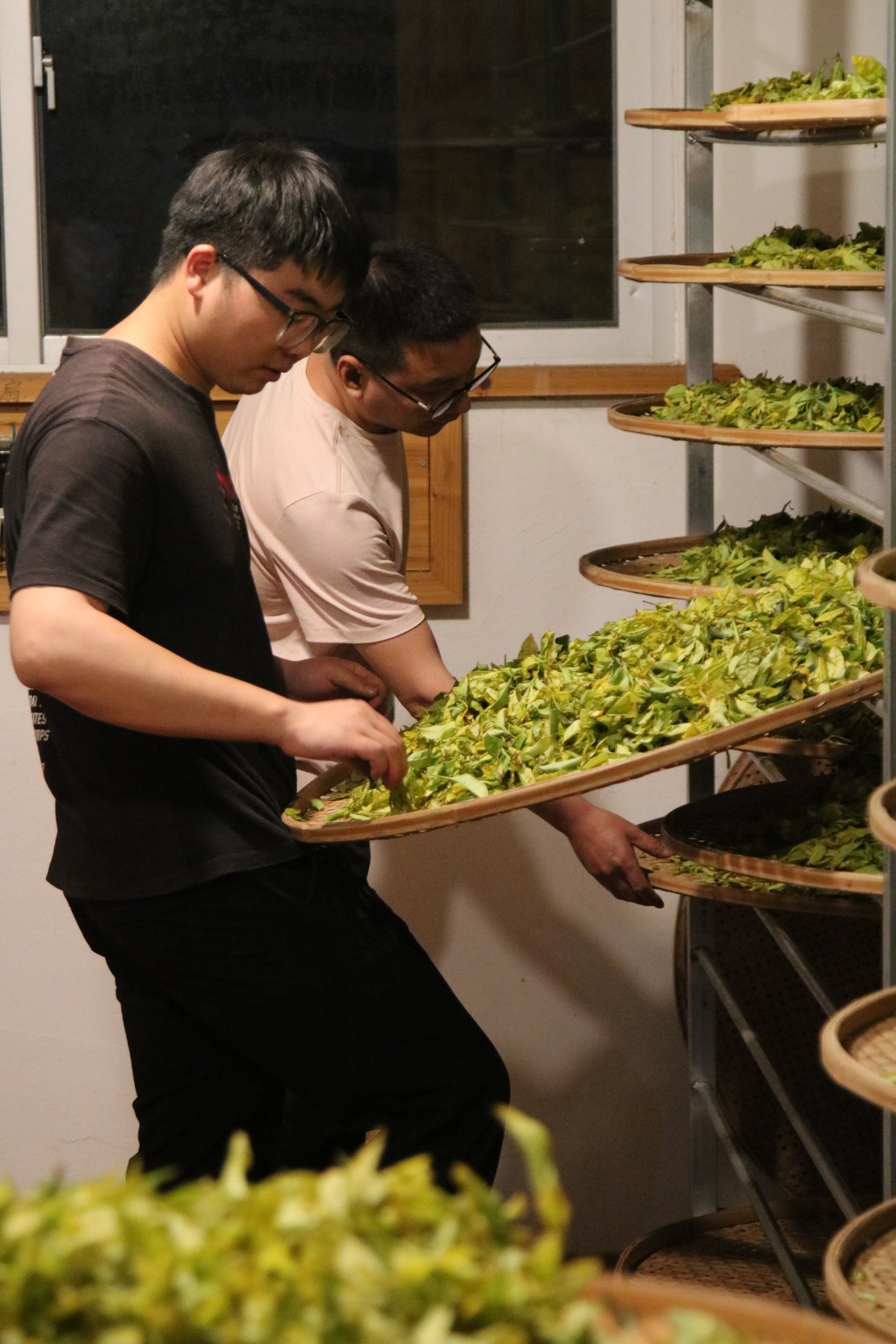The continuation of this elegant flavor is inseparable from the craftsmanship and dedication of two generations. Gao Peng and his mother deeply understand the art of making Bai Jiguan, following ancient methods while integrating new ideas. At dawn three days after the Spring Equinox, they tread through morning dew to pick one-bud-two-leaf shoots, when the buds have accumulated abundant theanine, the foundation of their fresh and brisk flavor. From sun withering to establish the aroma base, to the alternating shaking, sieving, and resting during leaf oxidation to induce the "green leaves with red edges", followed by careful control of twelve processes including fixation, rolling, and roasting, the mother and son use the intangible cultural heritage wisdom of "making tea according to the leaf condition and weather" to awaken the tea's inner qualities, allowing the tea fragrance to unfold layer by layer like spring water—retaining Bai Jiguan's original freshness while adding depth to the rocky charm.