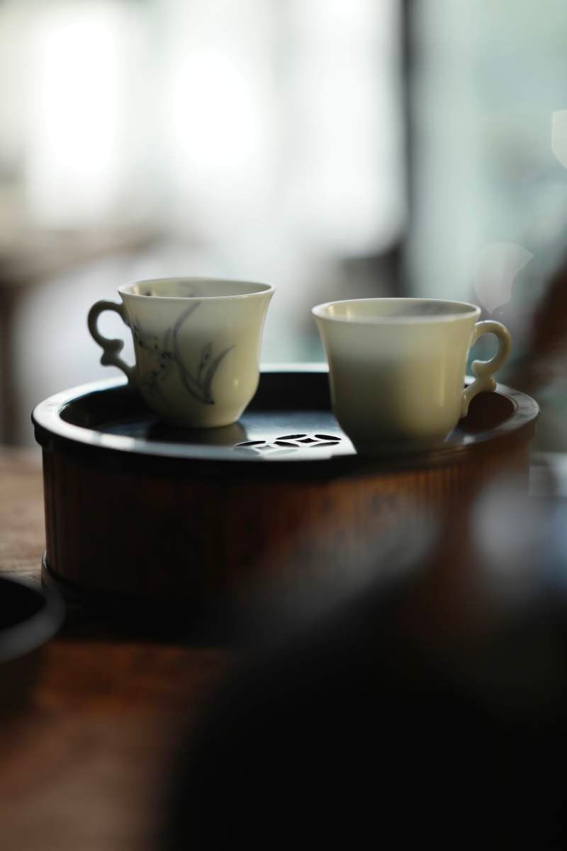 In the world of utensils at Tongxin She Teahouse, there is a touch of elegant blue—a hue that carries the warmth of handcraft from Jingdezhen and the natural serenity of orchids. This is the Ting Lan Blue-and-White Orchid Ear Cup.