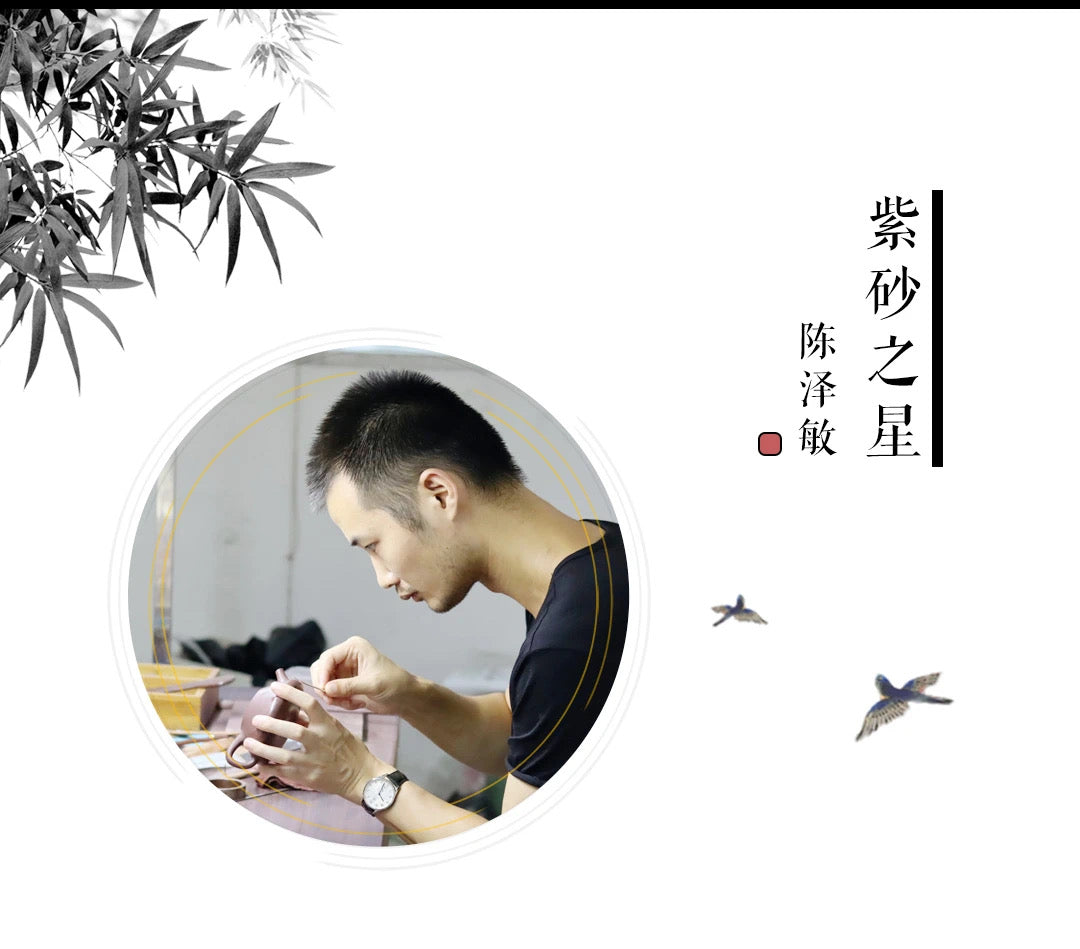Master Chen Zeming is a highly regarded young and accomplished ceramic artist in the Yixing clayware circle. Born in 1989 in Yixing, the renowned "Pottery Capital" of China, he joined the pottery-making studio of Master Liang Qing after his military service in 2013 to study the art of Yixing clay teapot crafting. His exceptional skills and unique artistic vision have earned wide acclaim—one of his works was auctioned for 1,500 US dollars at the Ziyun Tiancheng Yixing Clay Art Special Session of the 2022 Yunzangzhai Autumn Auction.