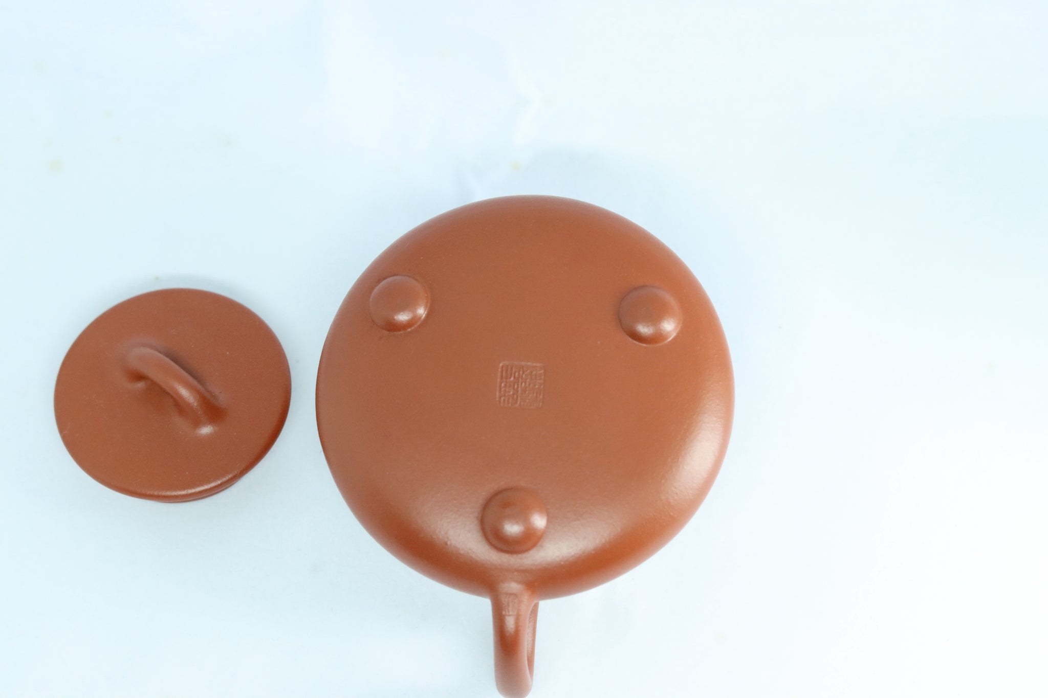 What makes this Flat-lid Small Shipiao truly exceptional is its clay material—original cinnabar clay from Huanglong Mountain. Cinnabar clay has long been revered as a rare and precious variety among Yixing clays, and the original cinnabar clay from Huanglong Mountain is an even more scarce treasure. It is found only in the narrow layer, merely a few centimeters thick, between the yellow stone blocks on the mountain top and the jia clay ore in the mountain body, boasting limited reserves and superior quality. This particular cinnabar clay is rich in sandy texture, hence its name. Once crafted into a teapot, it takes on a warm hue of reddish brown with a subtle yellowish undertone, with fine particles faintly visible within the clay body—like twinkling stars in the night sky, understated yet layered.
