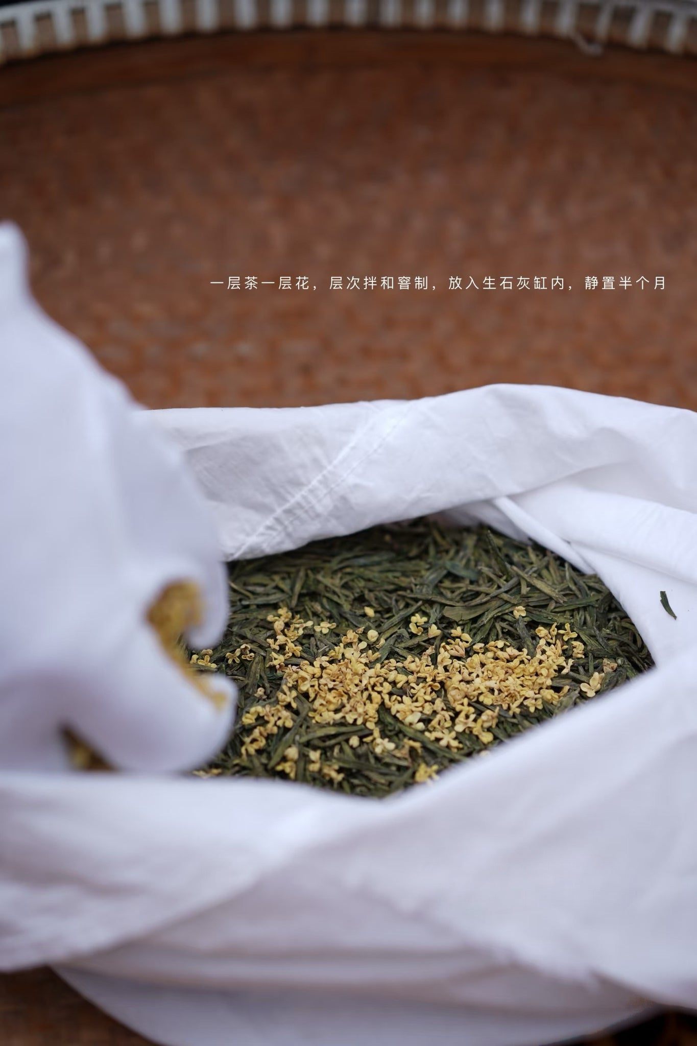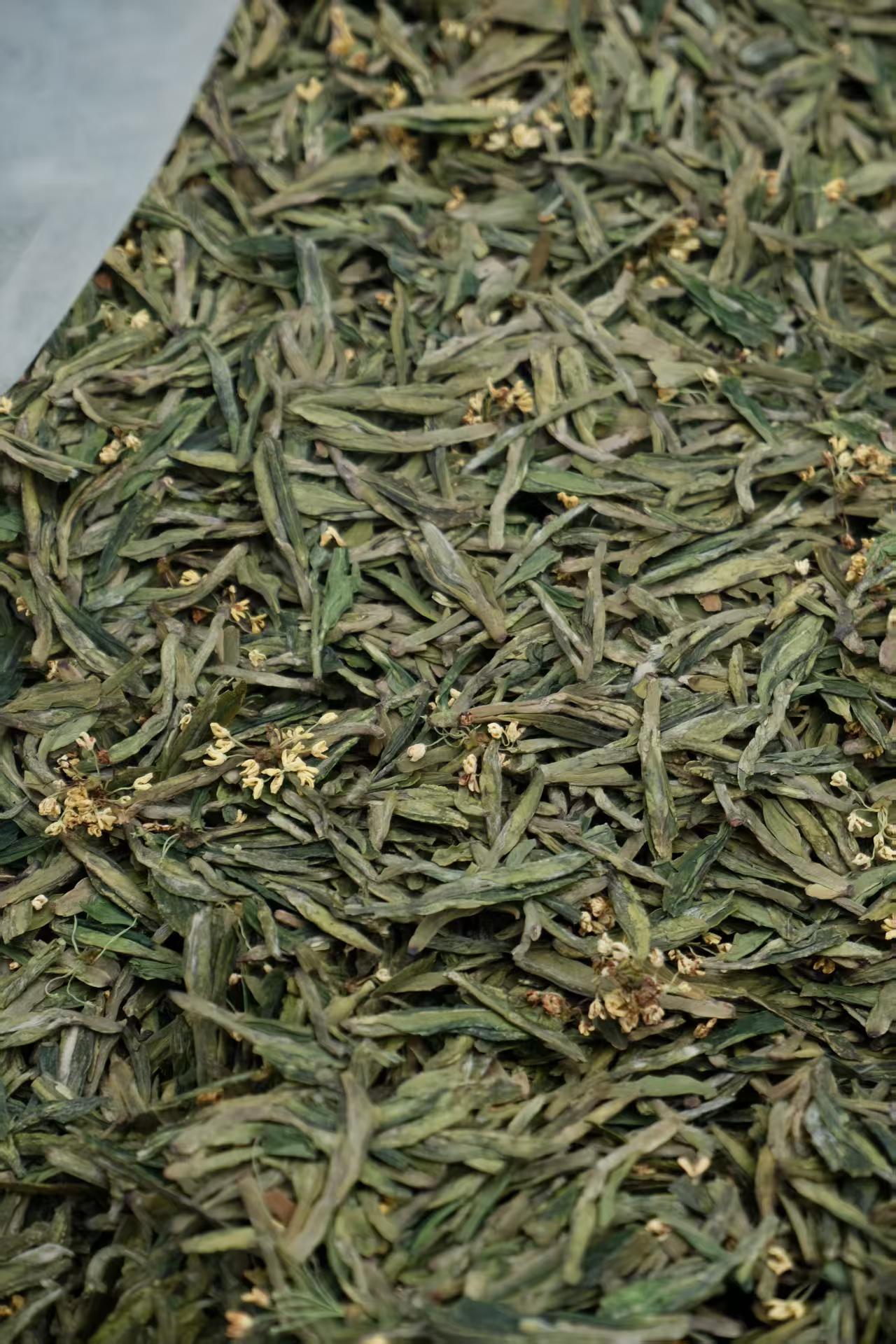 Sweet Osmanthus Longjing Tea is most famous in the area around Hangzhou, Zhejiang Province, a perfect combination of natural seasons and artisanal craftsmanship. It uses limited-edition spring Longjing tea (harvested before the Qingming Festival) as the tea base, which absorbs the freshness of the entire spring. Then, it takes sweet osmanthus—the famous autumn flower of Hangzhou—as the key ingredient. Through the traditional scenting process, the elegance of Longjing tea and the fragrance of sweet osmanthus blend slowly over time. No additional flavorings are added; the natural interaction between tea and flowers alone creates this unique tea with both "spring water (freshness of spring tea) and autumn fragrance (scent of osmanthus)".