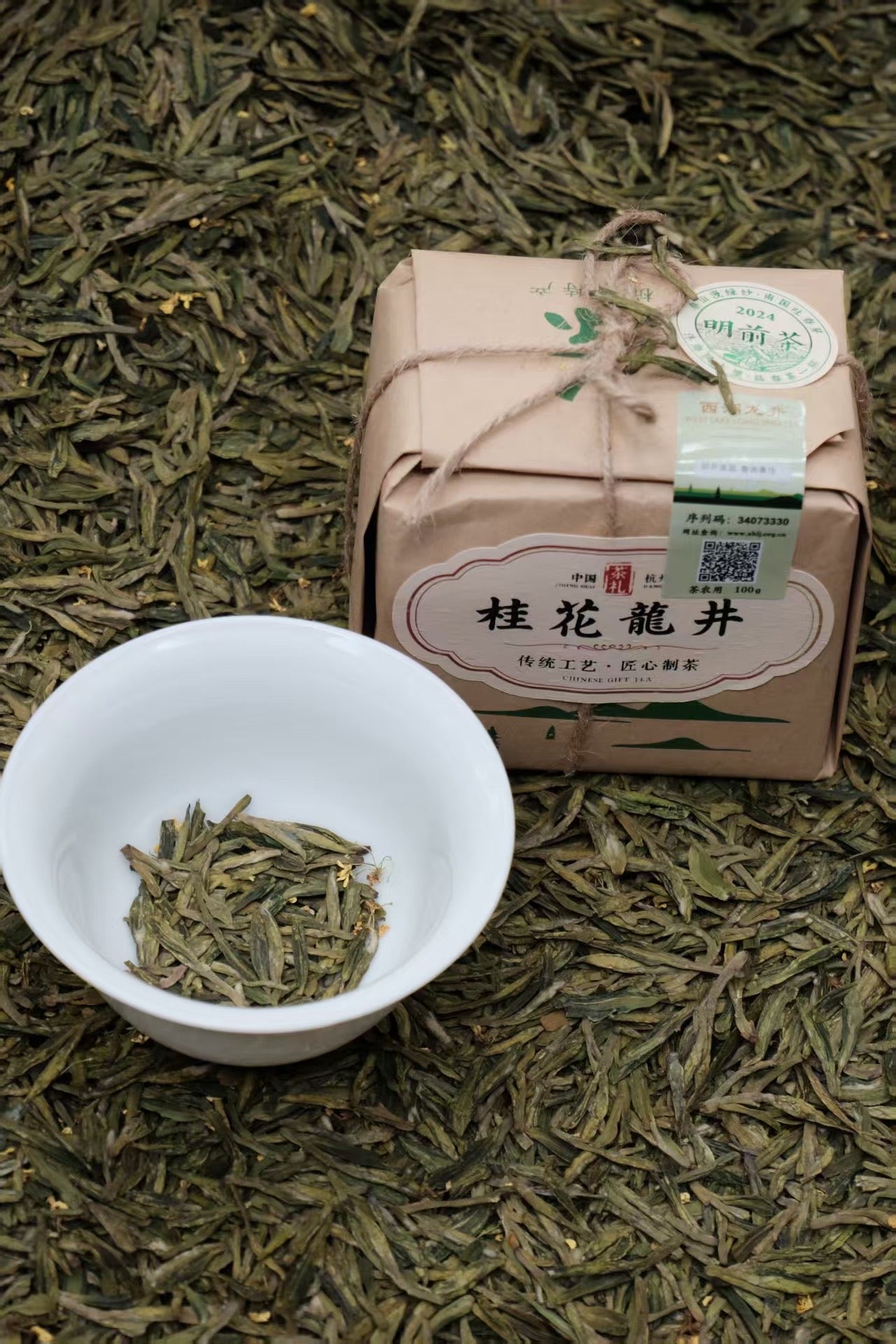 When brewed, there is not a single osmanthus flower in the cup, yet the fragrance hits first—the fresh, lively scent of osmanthus spreads first, followed by the rich aroma of Longjing tea layer by layer. When you take a sip, sweetness and fragrance fill your taste buds instantly: there is the fresh, mellow aftertaste of Longjing tea soup, and the subtle sweetness of osmanthus integrated into it. One sip soothes both body and mind, as if you are holding the entire autumn of Hangzhou in your hands.